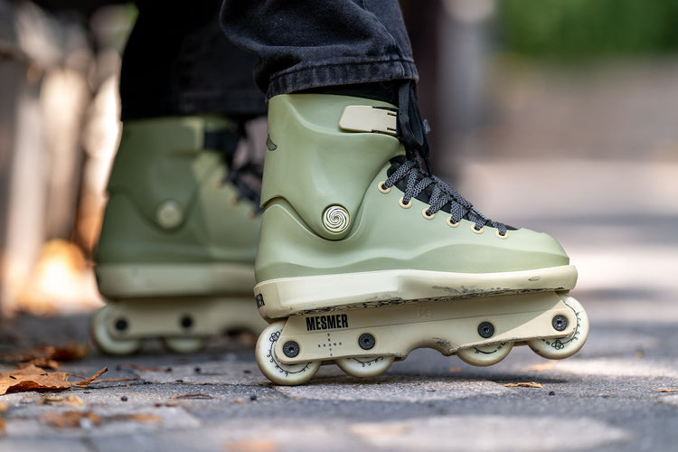 Mesmer Throne Team Aggressive inline skates for street and park skating. Supportive shell with fast and longlasting soul plates and reworked MYFIT liners. Slides on Kizer Fluid ...