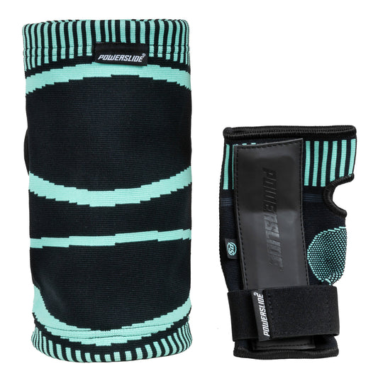 Powerslide Onesie Teal Dual Set - One-size-fits-all protective gear set for action sports. Wristguard with durable splints, pads include dual-denisty EVA foam and large caps.