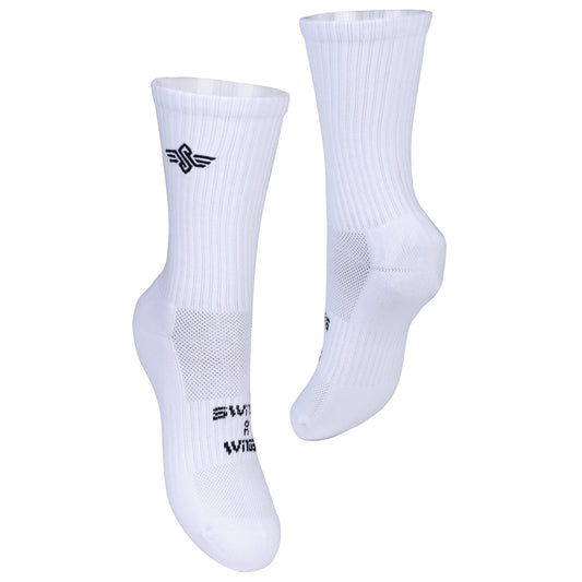 Swings socks offer a snug, comfortable fit ideal for post-training recovery and casual wear, reducing friction and pressure points while providing a soft, premium cotton feel.