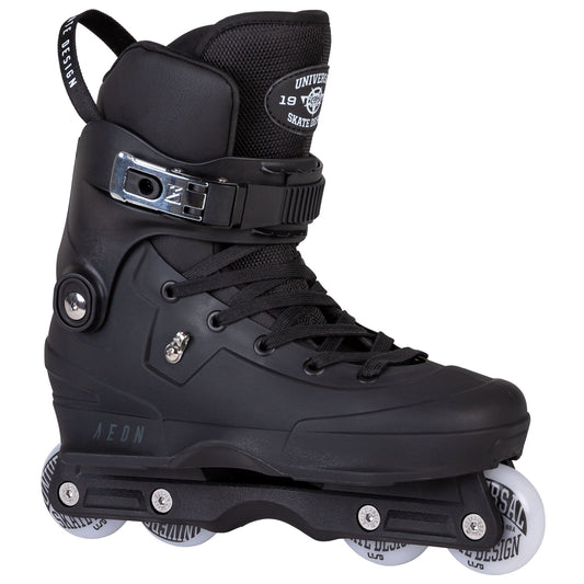 USD Aeon Team 60 Black aggressive inline skates for grinds & street skating. An affordable, featured-packed unibody aggressive skate with a 61mm flat setup.