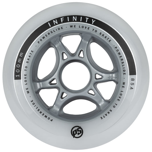 Powerslides’ Infinity 100mm 85A wheel is made of SHR (Super High Rebound) polyurethane (PU) for smooth and fast-rolling and long-lasting performance.