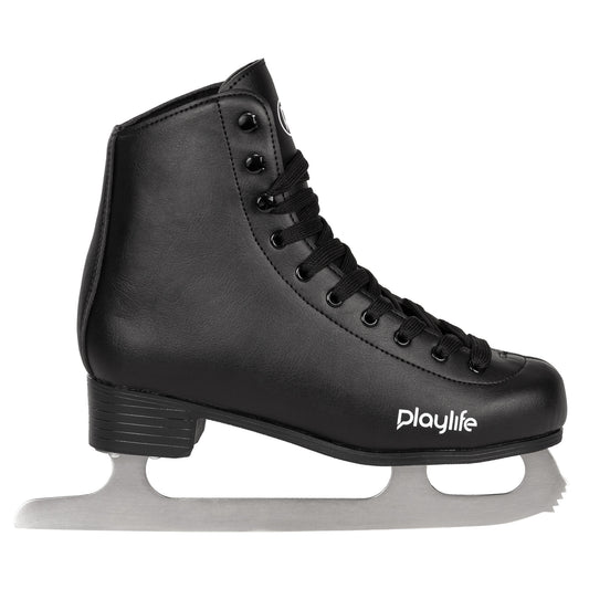 Playlife Freezer Black Ice Skate - Capable hard shell ice skate with dual-size liner. Hockey-style blade holder, pre-sharpened, low-radius blade.
