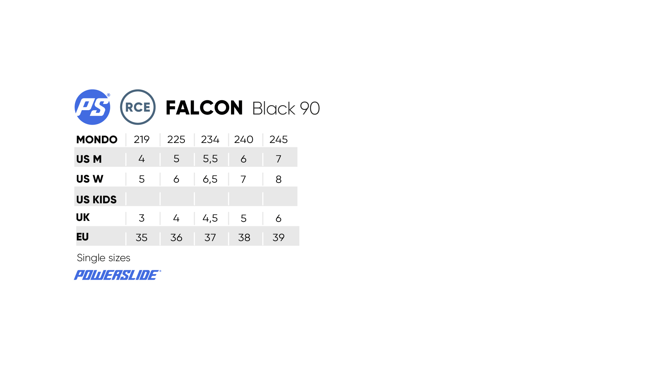 The POWERSLIDE FALCON 90 is the perfect way to introduce kids to inline speedskating at a great price point. Incorporating technologies from POWERSLIDE’s race-proven new thin shape of inline speedskates, The FALCON is a 4-wheel inline race skate for an affordable price. The skate gives kids all the tools they need to discover new speeds and develop their speedskating skills. The light shell is constructed out of carbon anf glass fiber, making it durable and responsive. Complete with a precision Core Experience frame riding on 4x90mm wheels and smooth ABEC 9 bearings, young skaters get a fast, responsive skating experience for a great price. The POWERSLIDE FALCON 90 inline speedskate gives kids and beginners access to a great quality ride for an affordable price.