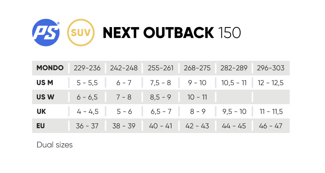 | Top Closure | Micro-adjustable PS Prime buckle, 36-39 = 18cm, 40-43 = 20cm, 44-47 = 22cm |
