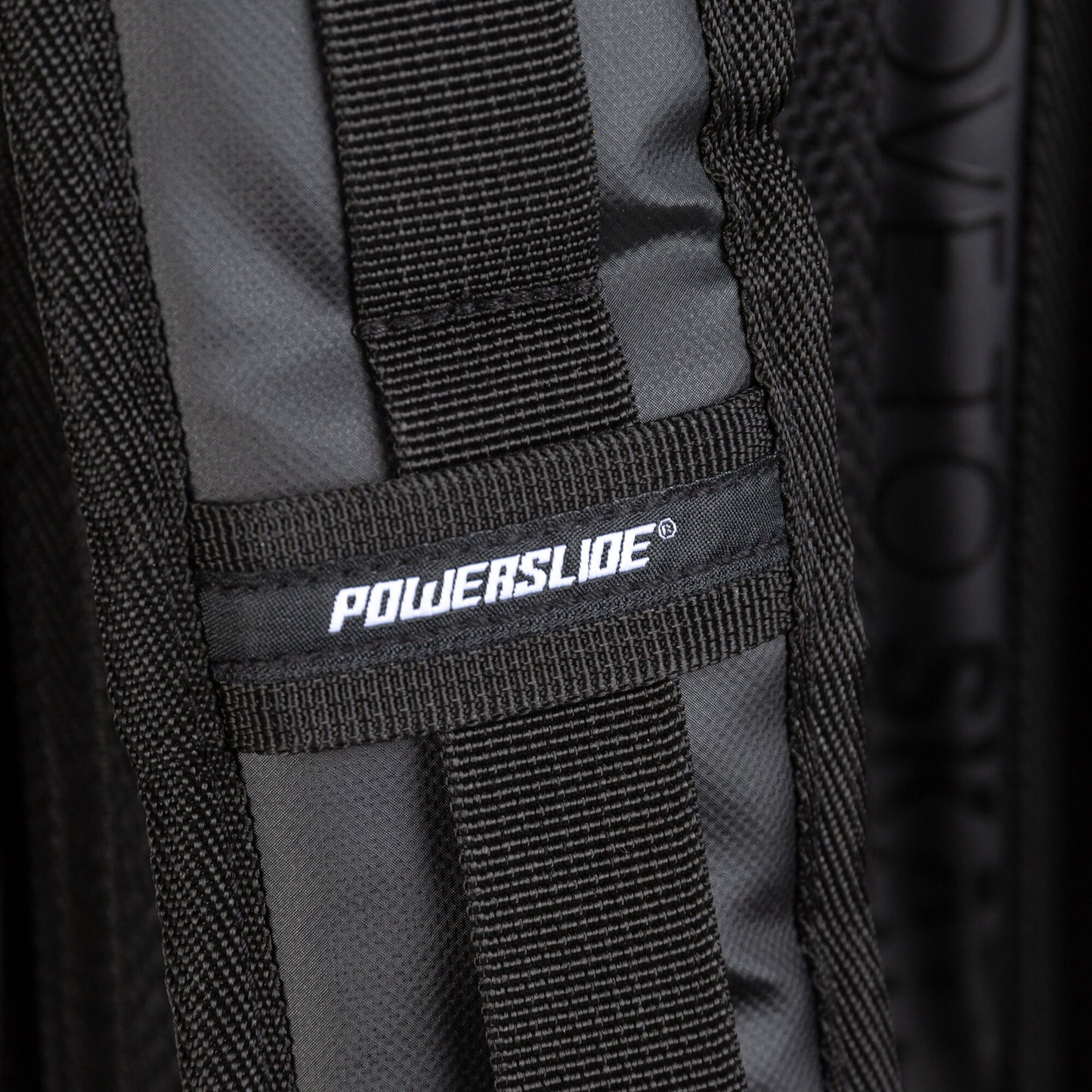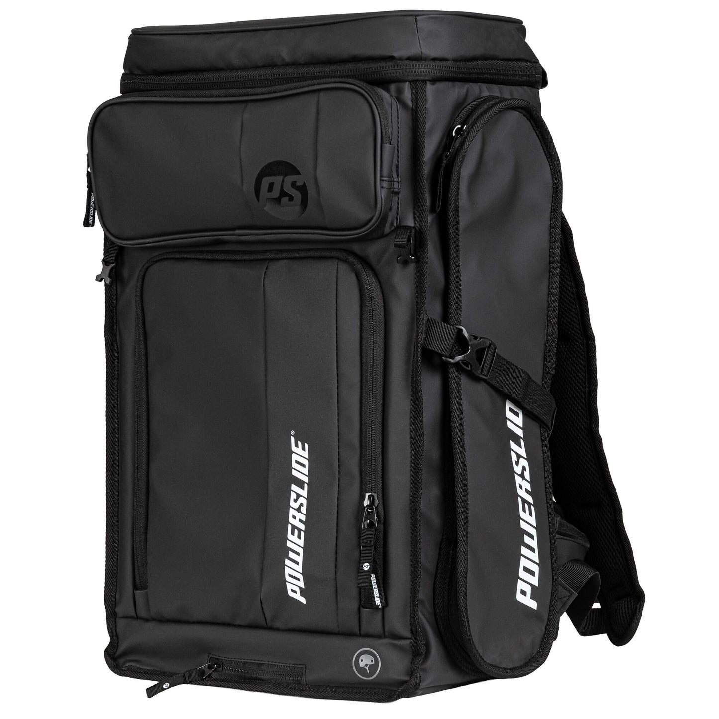 The Powerslide Road Runner Backpack II is designed for travelers, crafted from premium nylon and PU materials. This spacious bag features a large main compartment perfect for storing clothing and gear. Its unique, fashionable design, combined with UBC functions on the side and stylish front panels, ensures you stand out from the crowd. Strategically padded shoulder straps and a back panel guarantee comfort and durability. Skates can be securely fixed on the outside with skate holders, and the front panel includes a hidden mesh cover for helmet storage. An extra side zipper provides convenient access to your computer and electronic parts. With a strong hook for hanging and storage, this backpack is the perfect size for training and events, combining stability, strength, and style.