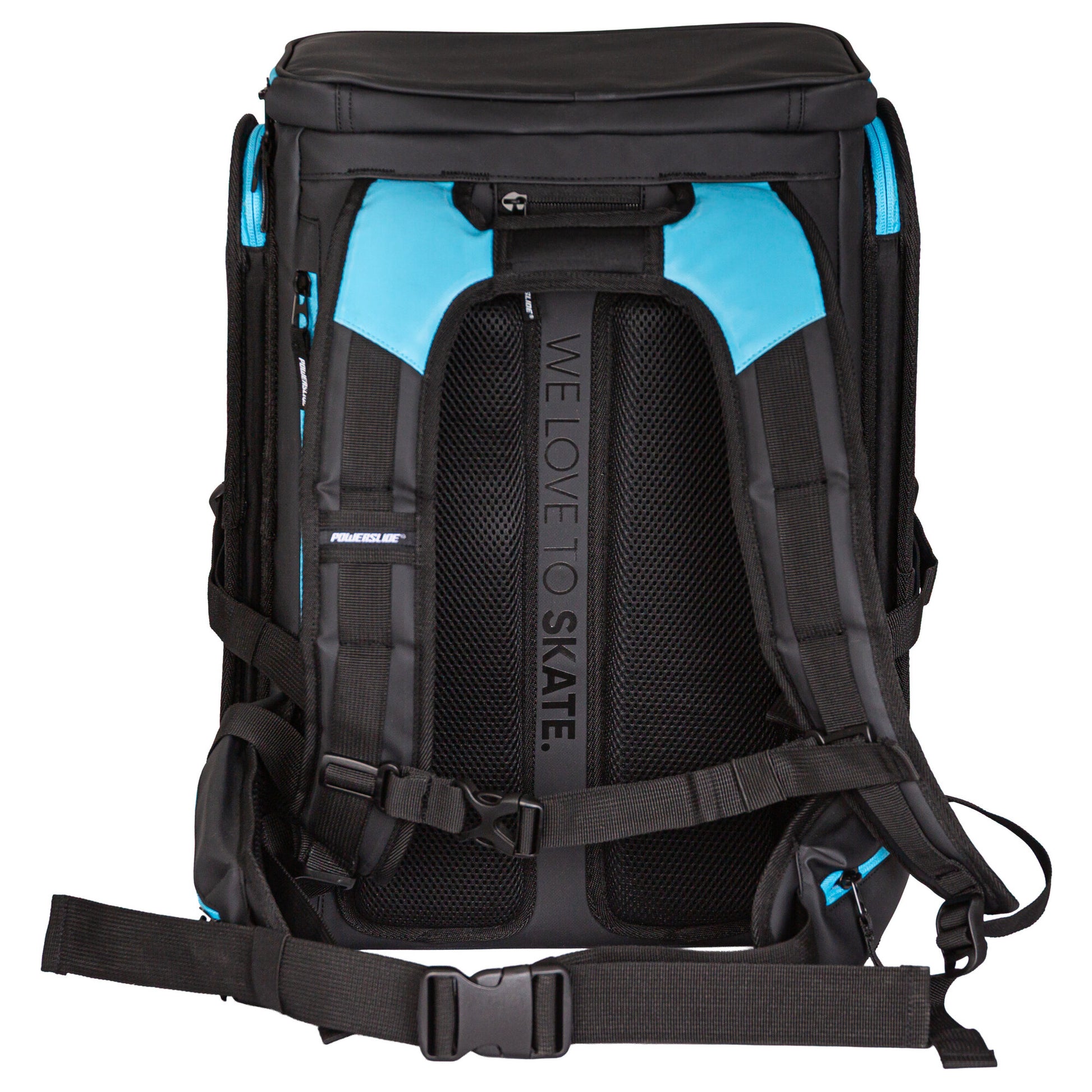 The Powerslide Road Runner Jr Backpack is designed for travelers, crafted from premium nylon and PU materials. This spacious bag features a large main compartment perfect for storing clothing and gear. Its unique, fashionable design, combined with UBC functions on the side and stylish front panels, ensures you stand out from the crowd. Strategically padded shoulder straps and a back panel guarantee comfort and durability. Skates can be securely fixed on the outside with skate holders, and the front panel includes a hidden mesh cover for helmet storage. An extra side zipper provides convenient access to your computer and electronic parts. With a strong hook for hanging and storage, this backpack is the perfect size for training and events, offering a balance of stability, strength, and style. Just a bit smaller than the big brother and having one big mid compartment without separation.