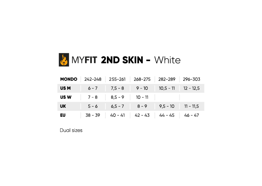 The MYFIT 2nd Skin liner is meticulously designed for boots with narrower shells, providing optimal fit and comfort where padding space is limited. It is also an excellent option for skaters with wider feet who prefer a standard shell without experiencing pressure points or discomfort. This liner is ideal for those looking to downsize their skate shell size. All MYFIT liners deliver immediate comfort thanks to their 3D anatomically shaped padding, constructed from multiple layers of premium foam materials with varying thicknesses and densities. This ensures consistent comfort and performance every day. The toe box features a stretchable SBR material that accommodates two sizes. The updated tongue, made of pre-shaped and molded EVA foam, enhances fit and comfort. The liner provides full control, a snug fit, and exceptional comfort. The heel area is fully heat-moldable, allowing for repeated customization to achieve the perfect fit. The 2nd Skin liner includes a “custom heel fit” feature with molded EVA foam to optimize heel lock. The lacing system on the 2nd Skin liner adds extra stability and support, enhancing control and performance. The lace loops offer two options: lacing just the liner or connecting the shell and liner to further improve heel lock. The updated design includes new extra lacing loops that also function as a carry strap on the heel.