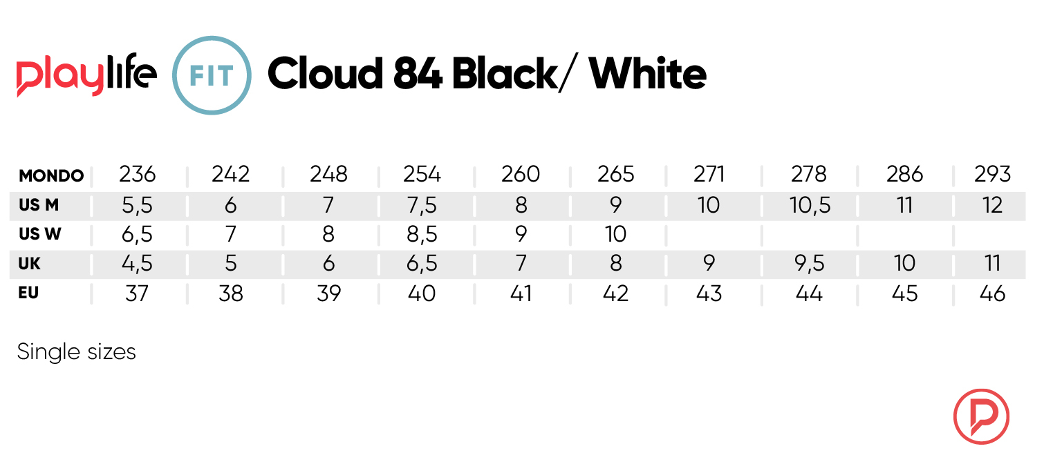 Playlife Cloud Black / White - Fun, reliable inline skate for a great price. Comfortable soft boot design, 6063 aluminum frame, 80mm wheels up to size 40, from size 41 using 84mm wheels