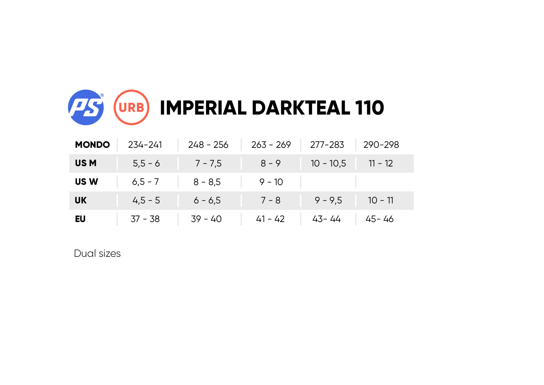 The Powerslide Imperial Dark Teal 110 is a robust and versatile urban inline skate from the esteemed Imperial collection, which is known for its durability and performance. This model was developed for urban freeriding and is therefore ideal for commuters and city explorations.