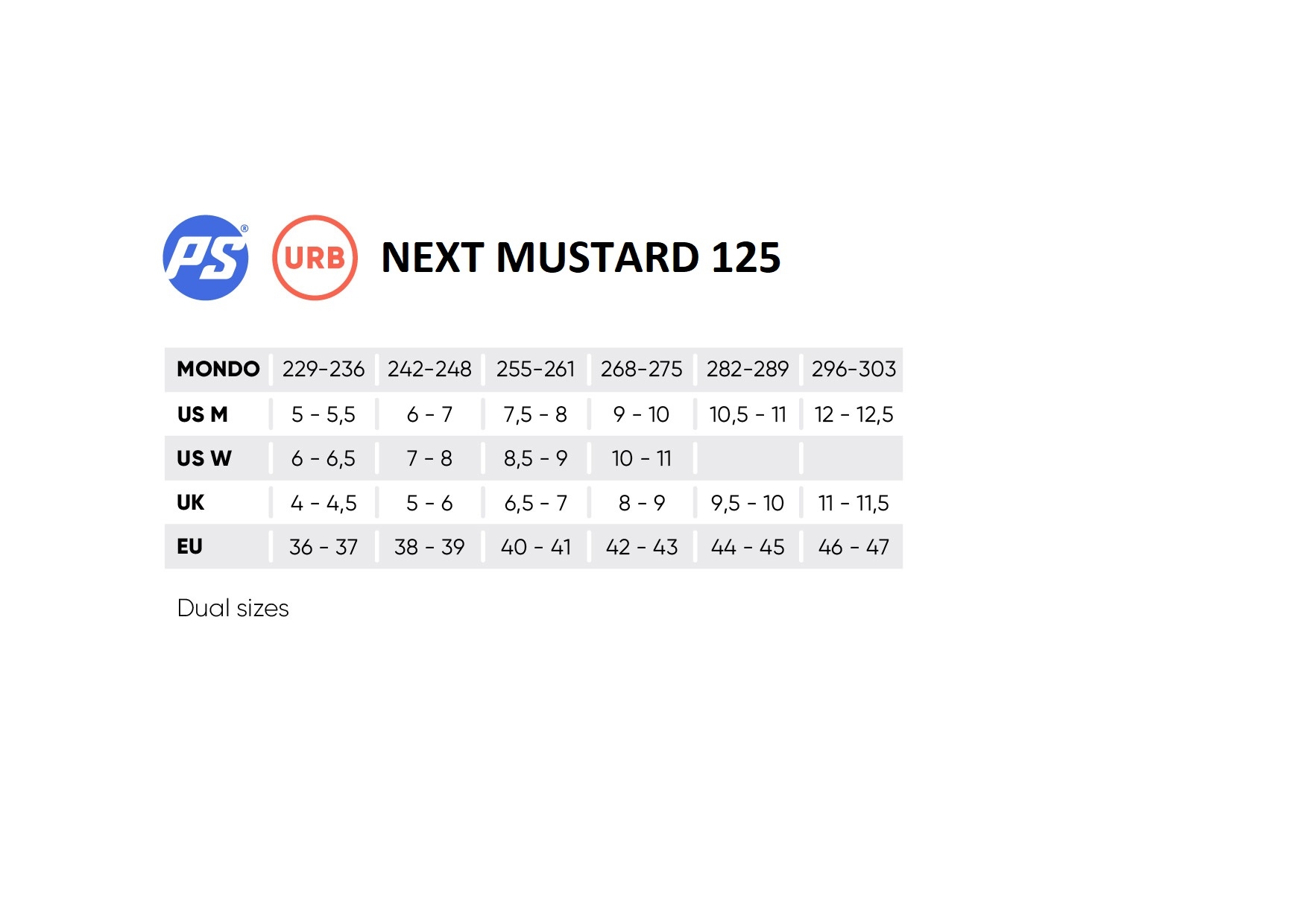 The NEXT Mustard 125 includes the well-known Elite aluminum frame with its uniquely designed wheel housing that provides extra stiffness. The TRINITY mounting system brings your wheels as close to the foot as possible to improve stability, and control and most of all improves power transfer. Riding on 125mm big wheels in combination with WICKED ABEC 9 bearings offer maximum speed and fun. The Powerslide NEXT Mustard 125 is a high-performance urban inline skate ready to hit the road.