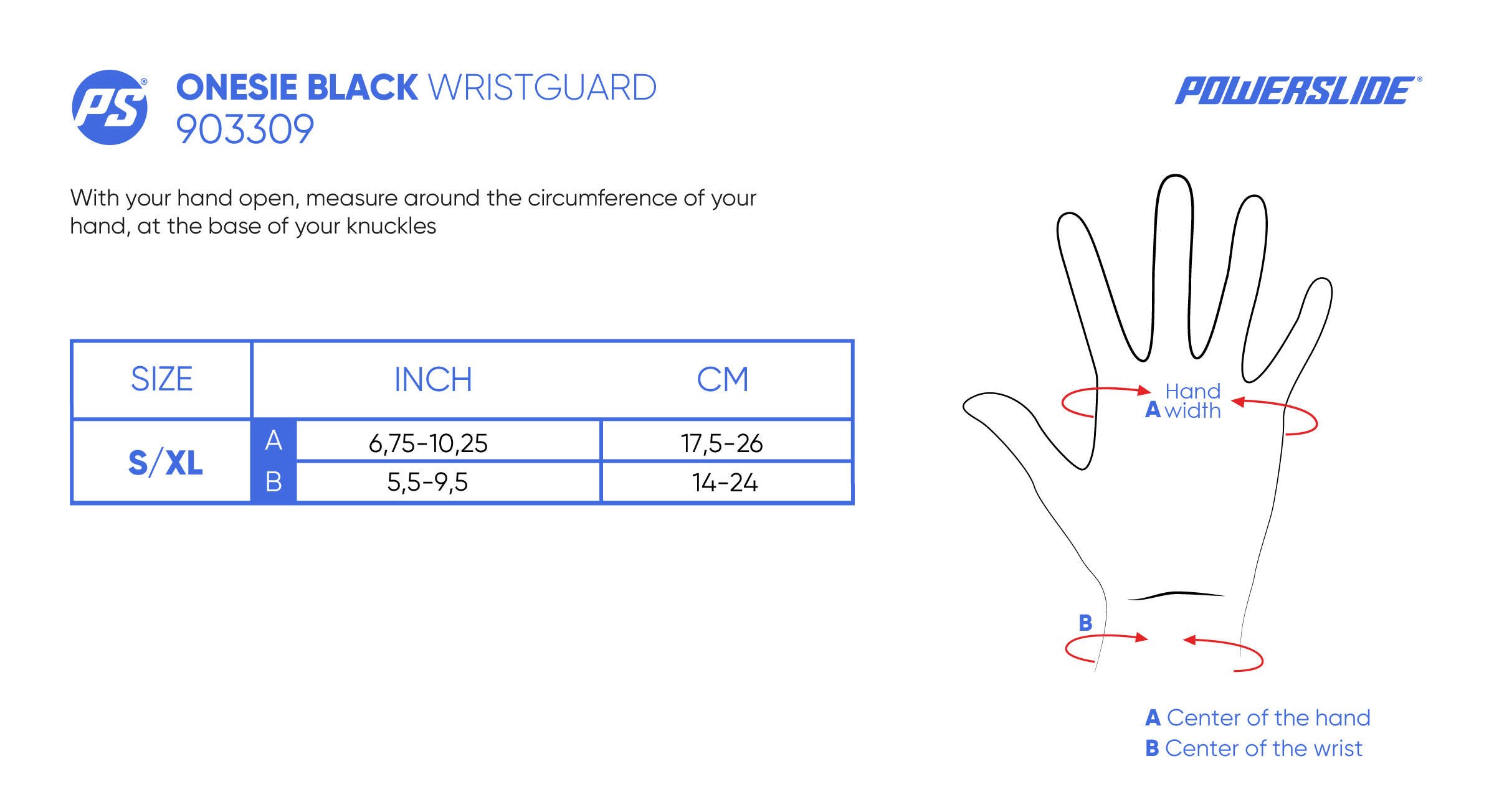 Not sure what size of wristguard is right for you? No problem, with the POWERSLIDE Onesie Black wristguard you can’t go wrong. This innovative protective wristguard for action sports is one size fits all fits - ranging from size Small (S) up to X-large (XL). The Onesie Black wristguard from POWERSLIDE incorporates a 4-way stretchable knitted cotton sleeve that not only makes the wristguard comfortable, it also promotes breathability which helps to keep you cool even during the most intense sessions whether you’re inline skating, skateboarding, and enjoying pretty much any rolling action sport. You can have confidence knowing the POWERSLIDE Onesie Black wristguard is there to break your fall and disperse the force of impacts away from your wrist thanks to the durable palm splint and anatomically shaped back splint. The wristguard also has a wide strap to keep it firmly in place. Unmatched versatility, comfort, and protection - it’s the Onesie Black wristguard from POWERSLIDE. This wristguard passes the EN 14120 European safety test.