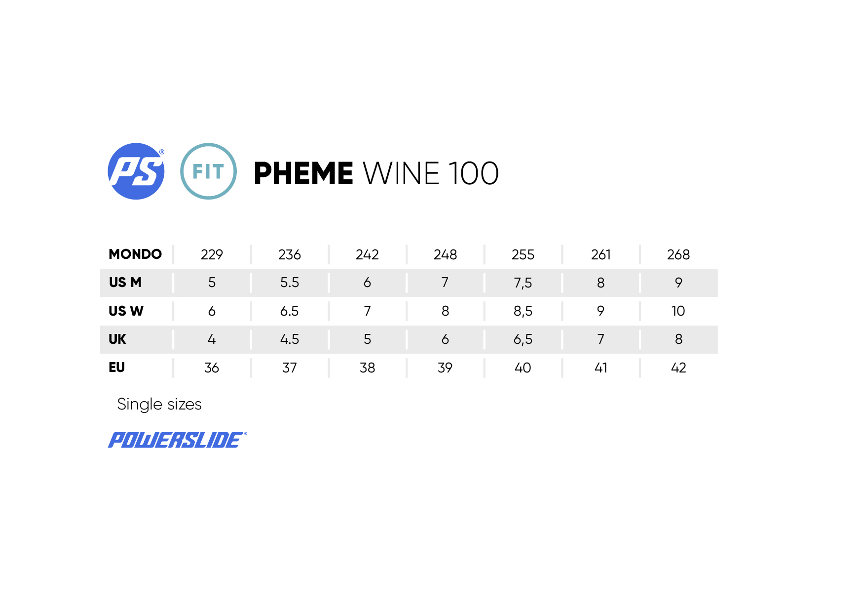 Powerslide PHEME Wine 100 fitness inline skates with unmatched style designed women and slimmer feet. Comfortable 3-wheel in a stylish fashion look for your skating day.