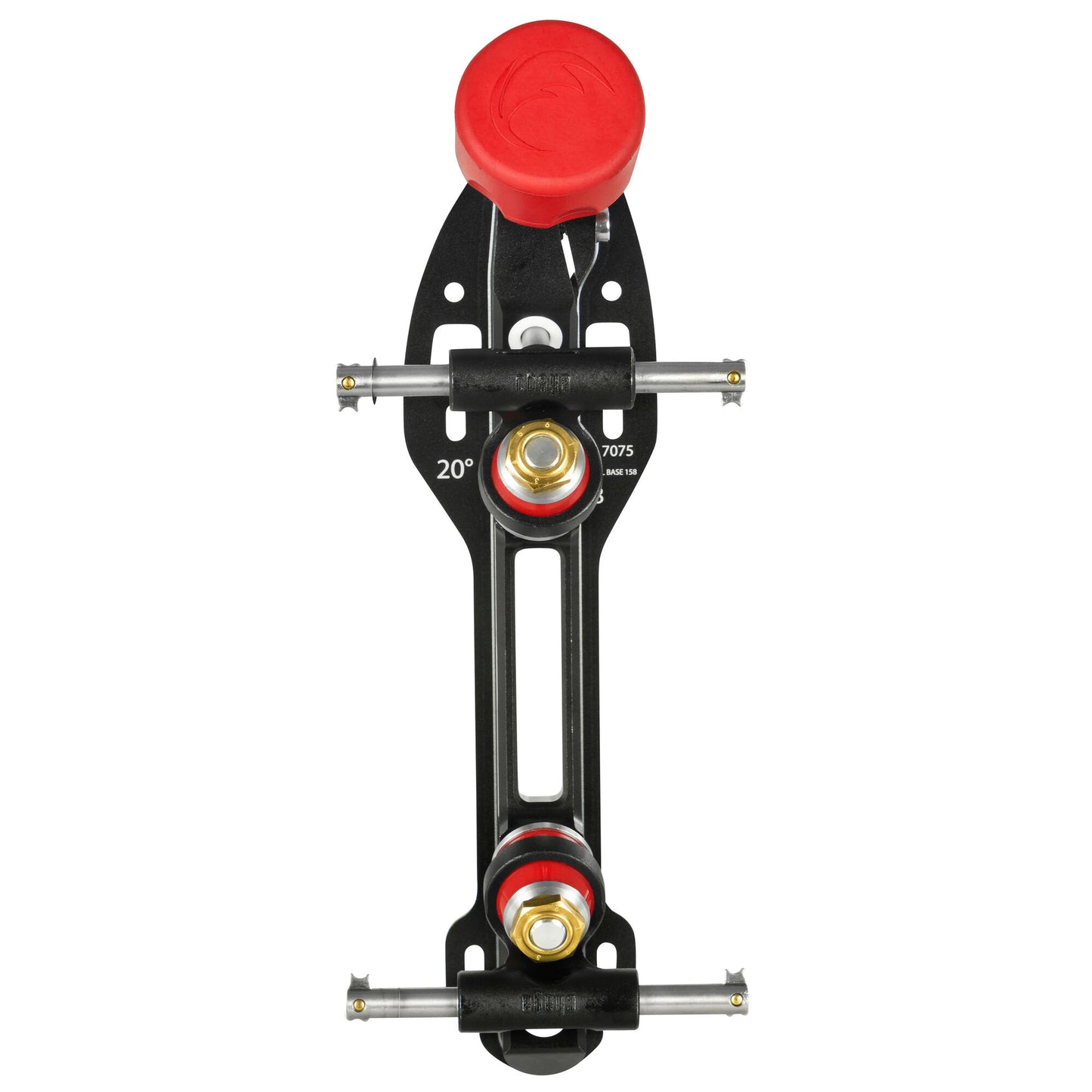 Chaya Shiva Standard plates are the most sophisticated plates on the market, loaded with incredible features for unparalleled performance. Arguably, the most remarkable feature is the Dual Center Mount (DCM) system. Our 2-point mounting system means you can mount your Chaya plate to your Chaya boot without using any power tools! You can mount your plates yourself following a very simple process that absolutely anybody can do. Mount your plates in very few minutes to your Chaya boots by simply fixing two screws with the provided hand tool. DCM enables you to shift your plate forwards and backward, and from side to side to compliment your preferred skating style. However, Shiva plates are also compatible with any other derby boot. The Chaya Cherry Bomb toe stop is positioned at an offset. This anatomically orientated position lets you stop faster, accelerate with more power, and makes toe stop work a dream! This along with our Power Toe System (PTS) which follows the natural shape of the boot offers superior power transfer as the boot and plate are more closely connected. Aluminum forged trucks locked in by super strong cushion cups made of Delrin, feature our standard axle system. This lightweight 20° plate made of 7005 aircraft aluminum is equipped with high-end Jelly Interlock polyurethane (PU-) cushions which provide great control and maneuverability. The Chaya Shiva plates will help you unleash your full potential.