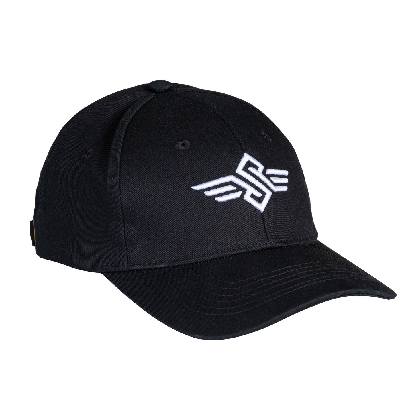Swings Cap is a five-panel hat made of organic cotton for days on the streets and on the race tracks, or anywhere between. Featuring a clean, simple, and classic design with a buckle at the back for easy resizing. The Swings Cap comes in black with a white embroidered logo.