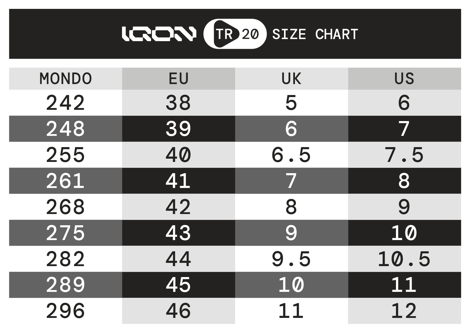 | 45º Closure / Front Foot Closure | Micro-adjustable Crown ratched buckle, lacing ystem with lace loops and hooks |