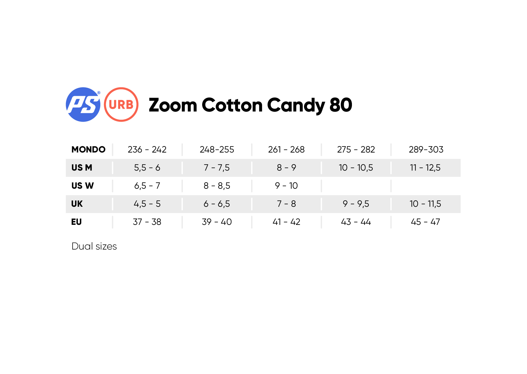 This is one fresh-looking skate, but it's more than just good looks. The durable hardboot can stand up to even the most intense urban skating. The ZOOM Candy Pink 80 includes a strong and supportive cuff along with a super comfortable dual-fit liner that covers two full-foot sizes to let you skate with ease all day long.